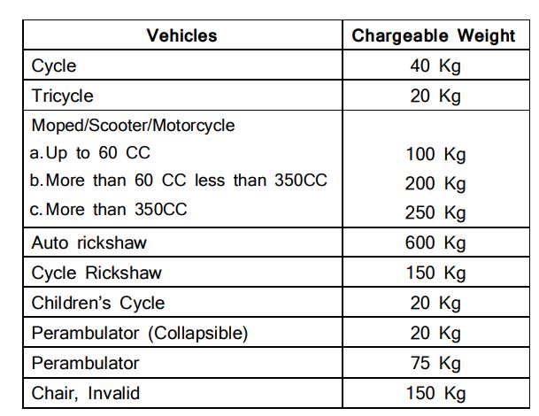 अपवाद: बच्चों की ट्राइसाइकिल (Child Tricycle) एवं विकलांग कुर्सी (Invalid Chair)।